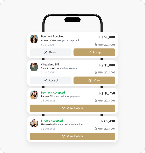 Stay informed with real-time alerts for every important financial activity. Laen Daen keeps you updated whenever a payment is received, an invoice is created, or a payment or invoice is approved so you never miss a critical update and always stay in control.