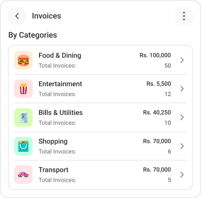 Organize and track your invoices by categories and custom tags for complete clarity. Quickly filter records, spot spending patterns, and manage finances more efficiently with a structured and flexible view of your data.